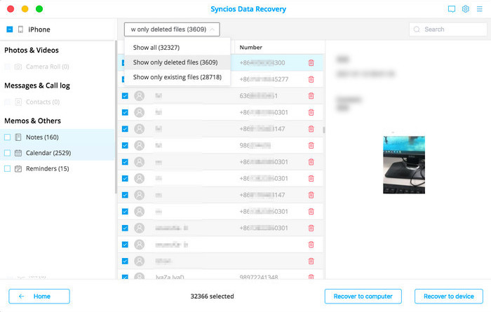 Once the program finishes scanning, you can begin previewing all extracted files on the panel. Then please select your lost files and click "Recover to device" or "Recover to Computer" to recover the found data.